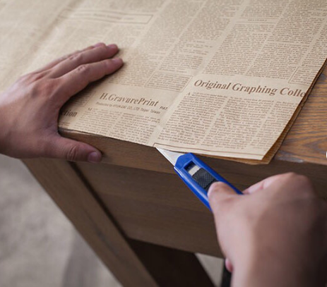 1、先将礼品盒放在包装纸上,按照礼品盒的大小,将包装纸折出痕迹,按照折痕用美工刀裁剪包装纸。