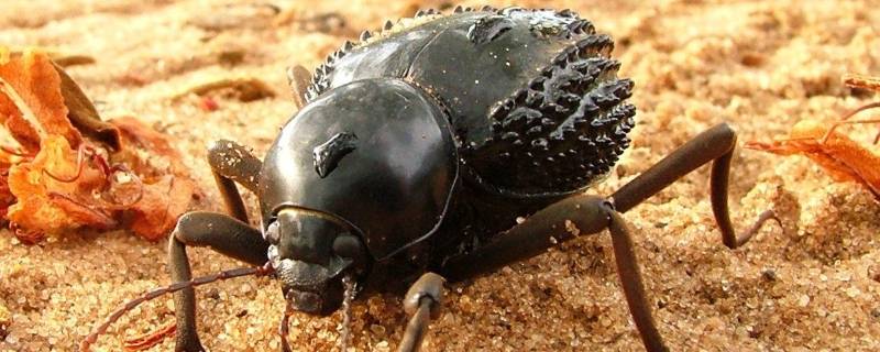 蜣螂全体呈黑色,稍带光泽,雄虫体长3.3-3.5厘米,雌虫略小。雌性头部前方呈扇面状,中央有一基部大而向上逐渐尖细并略呈方形的角突。后方有复眼,胸背板密布匀称的小圆突,足粗壮,中、后足跗节两侧有成列的褐红色毛刺。大多数蜣螂营粪食性,以动物粪便为食,有“自然界清道夫”的称号。常将粪便制成球状,滚动到可靠的地方藏起来,然后再慢慢吃掉。一只蜣螂可以滚动一个比它身体大得多的粪球。处于繁殖期的雌蜣螂则会将粪球做成梨状,并在其中产卵。