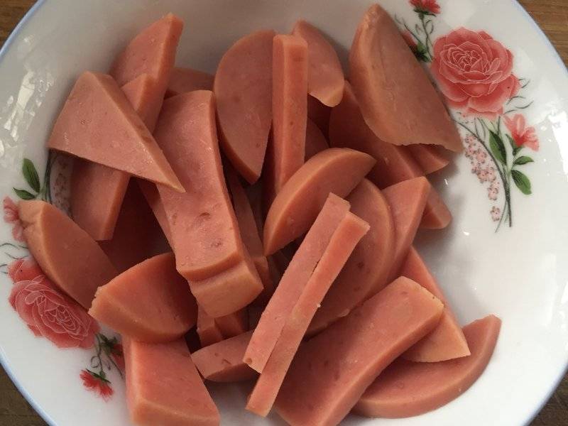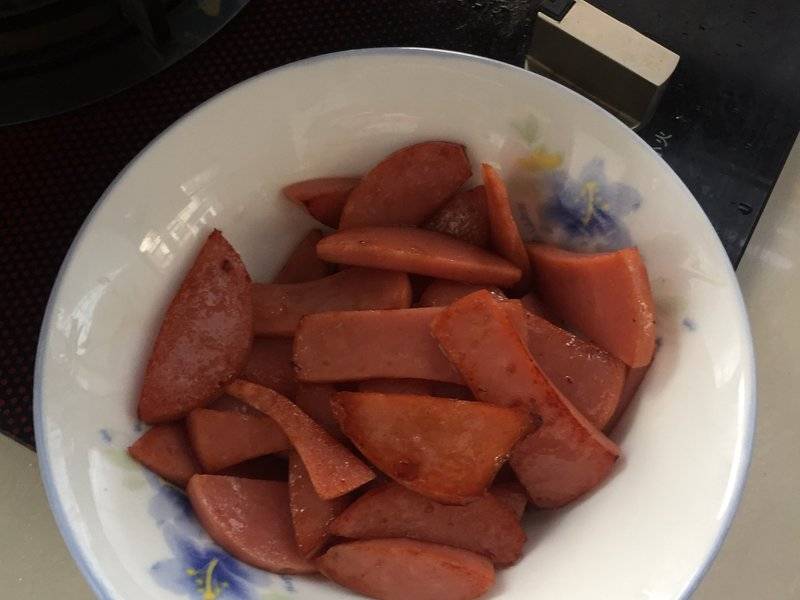 用料:河南豆500克、火腿半根、盐适量、生抽少许、味精少许。