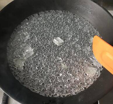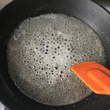 3、大概熬几分钟,达到这种微黄起泡黏稠的状态。