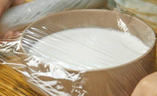 加入2g食用碱和一勺盐,搅拌均匀,裹上保鲜膜,在保鲜膜上扎些小孔。