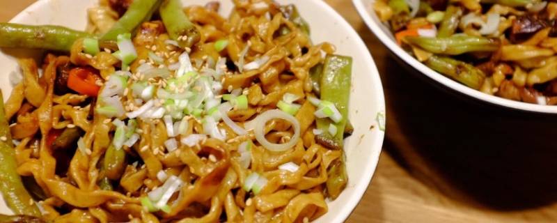 1、手擀面擀好备用,锅中放冷水煮开,放入手擀面煮熟,捞出放冷水备用。