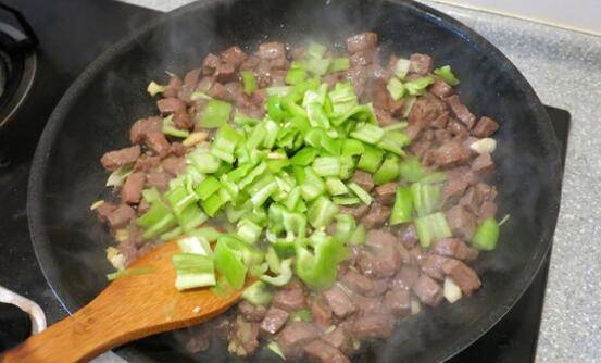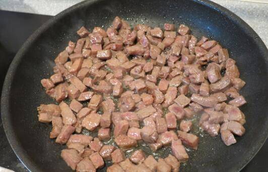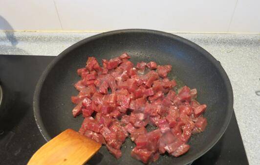 6、待牛肉丁变色时。
