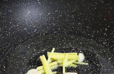 3、锅中倒入适量的食用油烧热,放入蒜末和姜丝炒出香味。