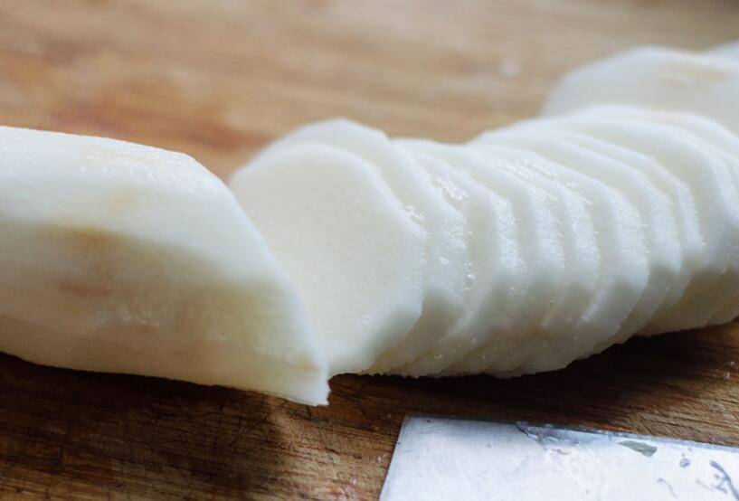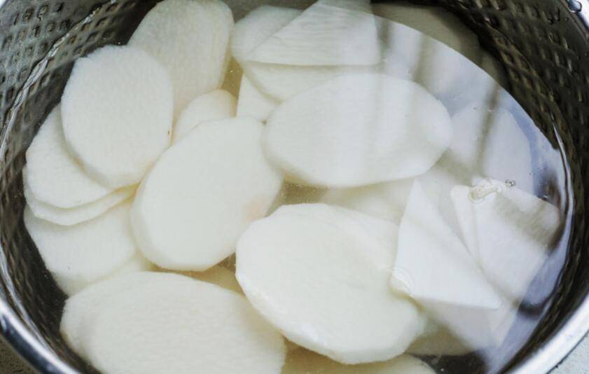 2、切好的山药片用清水洗净。