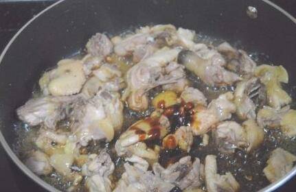倒入鸡块翻炒;稍变色就可以加入料酒和胡椒粉,去腥特别好。