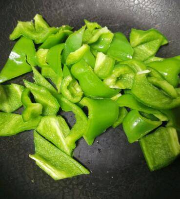 锅内不下油,干炒辣椒去水气,炒至稍软,盛出。