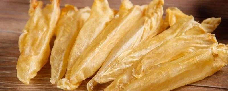 鱼鳔胶。鱼鳔水洗除去粘液、血污后,剥去内、外层薄膜,较大而厚的单独干燥成片胶;较小而薄的则数片叠在一起碾压成圆形或带形,干燥后称为圆胶或带胶。色微黄、半透明、质强韧,稍有鱼腥味,用作啤酒等饮料的澄清剂和果汁果酱的增稠剂。此外优质大黄鱼片胶又称鱼肚,是传统的海珍品。黄唇鱼胶是名贵滋补品。