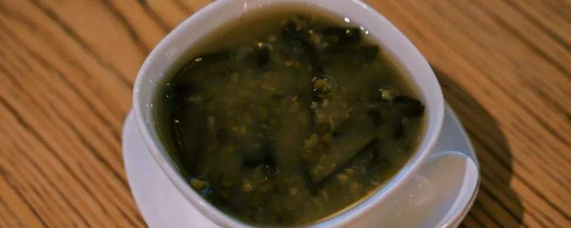 海带绿豆汤中含有含有多种有机物和碘、钾、钙、铁等元素,还含蛋白质、脂肪酸、糖类、多种维生素和尼克酸等,可消肿通气,清热解毒。
