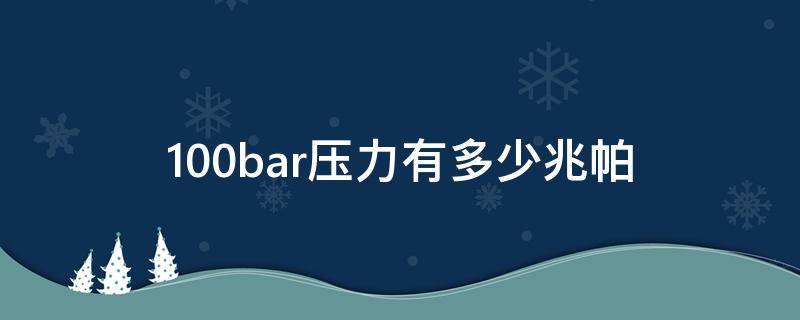 100bar压力有10兆帕。1巴(bar)=100千帕(KPa)=10牛顿/平方厘米=0.1MPa,所以100Bar=10兆帕(MPa)。bar是一个常用的压强单位。早先气象学中常用毫巴,后改用等值的国际单位百帕;兆帕是压强单位,代表单位面积受到的压力的比值,全称为兆帕斯卡。1Pa是指1N的力均匀的压在1m面积上所产生的压强。1兆帕=1000000帕,也可以写成1MPa=1000000Pa。