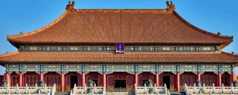 上承重檐庑殿顶,下坐3层汉白玉台阶,采用金龙和玺彩画,屋顶仙人走兽多达11件,开间11间,均采用最高形制。为中国现存最大木构架建筑之一,太和殿匾额建极绥猷匾,为乾隆皇帝的御笔,现存的牌匾为复制品。