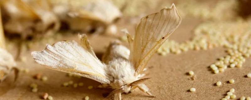 5、破茧而出:约十天后,羽化成为蚕蛾,破茧而出。出茧后,雌蛾尾部发出一种气味引诱雄来交尾,交尾后雄即死亡,雌蛾约花一个晚上可产下约500个卵,然后也会慢慢死去。