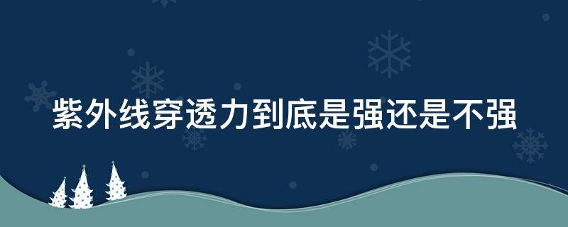 根据具体情况判断,不同情况紫外线强度不一样。紫外线的本质:紫外线属于电磁波,本质上是由光子组成的束流,紫外线波段在100-380nm之间,而10-100nm之间的波段称为X射线,380-440nm之间的波段称为紫光。接近X射线波段的短波长紫外线对人体伤害很大,而波长越长的紫外线的杀伤力就弱些。在平时那些最有害的短波紫外线,大气分子对太阳光有吸收和散射的作用,此外空气中的尘埃、烟粒、雨、雪、雾都对阳光产生散射和吸收,因此到达地面的紫外线已经是减弱过了的,特别是在阴天或者雾霾的天气,紫外线穿透力就更弱,而在晴天就相对较强。在高原,空气稀薄,紫外线穿透力就更强。