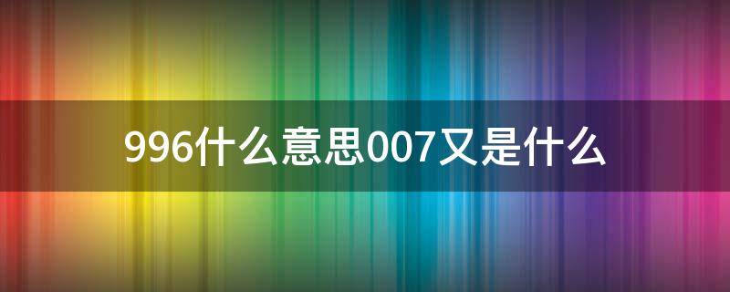 996是指早上9点上班,晚上9点下班,中午傍晚休息不足1小时的工作制度。007指0点到0点24小时,一周7天上班。007又是风靡全球的一个谍战系列电影,它不仅是影片的名称,更是主人公邦德特工的代号。在故事里,邦德是英国情报机构军情六处的间谍,代号007,被授予可以除去任何妨碍行动的人的权力。他冷酷但多情,机智且勇敢,总能在最危难时化险为夷,也总能邂逅一段浪漫的爱情,詹姆斯 邦德总是有美女相伴,那些女士被称为邦女郎。