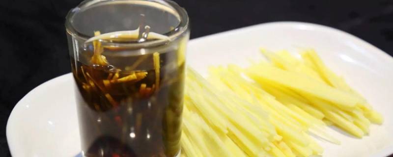 4、把切好的生姜丝放入锅中。