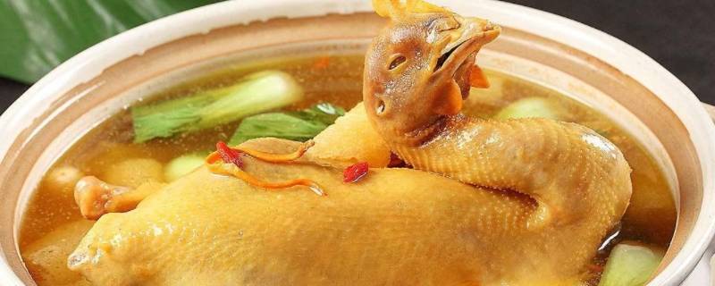 5、洗净鸡块,锅中加满水放入葱段、姜片和盐,大火烧开后转小火慢炖1-1.5小时。