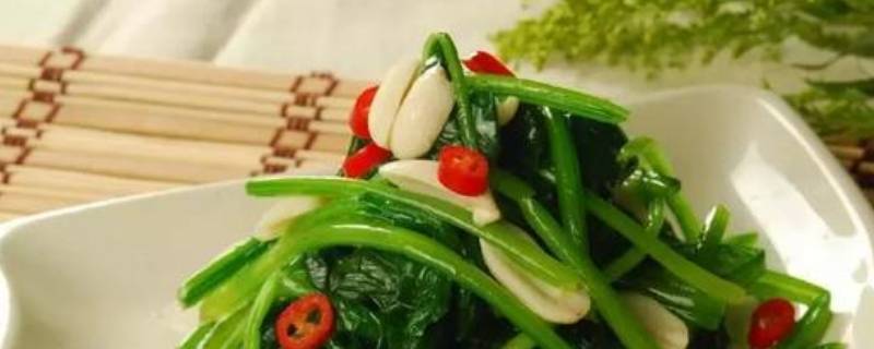 1、准备食材:菠菜300克、花生50克、干辣椒3个、花椒10颗、蒜2瓣、盐1/2茶匙、醋1汤匙。