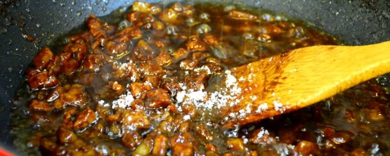 7、加入豆瓣酱与香辣酱炒匀,加糖,加少许水,加盖中火烧15分钟左右,即可出锅。