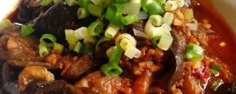 1、准备材料:茄子1个、小葱适量、蒜半个、豆瓣5克、生抽适量、白糖适量、肉末适量。