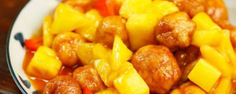 9、快速翻炒后下青椒块,炒匀后下菠萝片快速翻炒均匀,出锅即可。