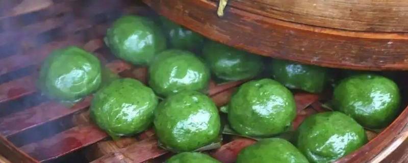 6、边捏边放块湿布可以防止表面干硬,包好馅后的艾团,垫上粽子叶,水开后上锅蒸十五分钟即可。