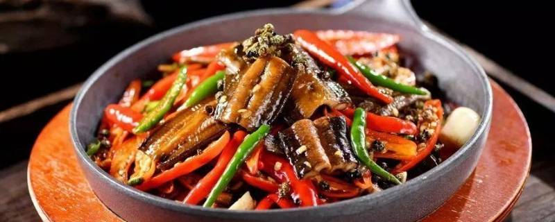 3、宫保鳝鱼:姜汁码好,再用另一小碗放入酱油、糖、醋、芡粉、葱节等对好。等锅内菜油烧热后,将鳝鱼放入锅内爆炒倒入瓢内滤去油。锅内重新放入少量的菜油,下滋粑辣椒炼黄,把备好的葱节等下锅,倒入鳝鱼炒转,烹入芡汁等佐料即成。宫爆鳝鱼不仅营养丰富,而且色泽红亮,香辣鲜浓,肉质嫩脆,会使人食欲大振。