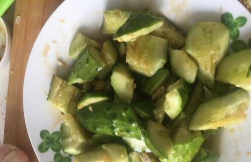 6、把黄瓜放入盘中再加上盐拌均匀即可。