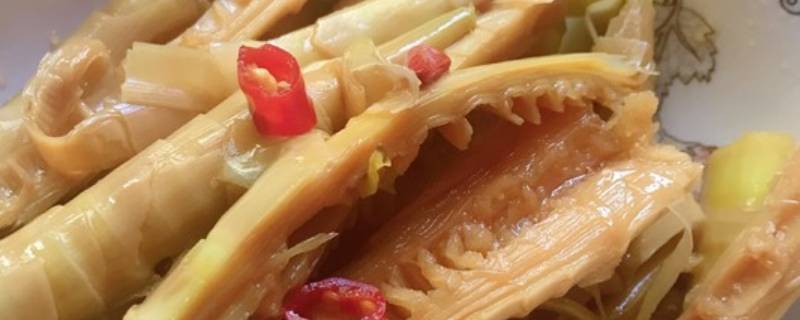 4、竹笋撕开后放入容器里,碗中放入调料搅拌均匀,倒入容器中,加水没过所有竹笋即可。