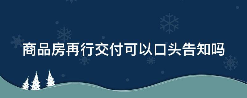 商品房再行交付不可以口头告知,商品房销售时,房地产开发企业和买受人应当订立书面商品房买卖合同。商品房买卖合同是指房地产开发企业将尚未建成或者已经竣工的房屋向社会销售,转移房屋所有权于买受人,买受人支付价款的合同。
