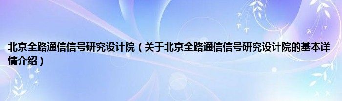 本文关于北京全路通信信号研究设计院的基本详情介绍就讲解完毕,希望对大家有所帮助。