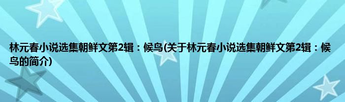 1、 《林元春小说选集朝鲜文第2辑:候鸟》是2011年延边人民出版社出版的图书。