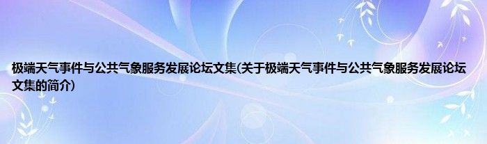 本文关于极端天气事件与公共气象服务发展论坛文集的简介就讲解完毕,希望对大家有所帮助。