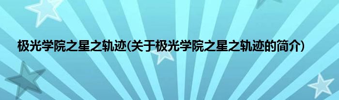 本文关于极光学院之星之轨迹的简介就讲解完毕,希望对大家有所帮助。