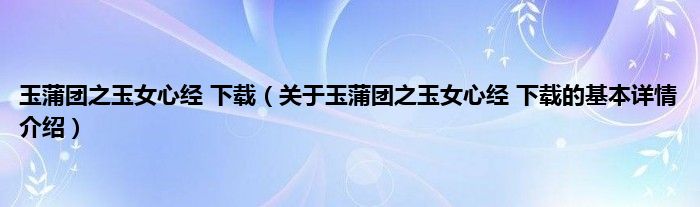 玉蒲团之玉女心经 下载(关于玉蒲团之玉女心经 下载的基本详情介绍)