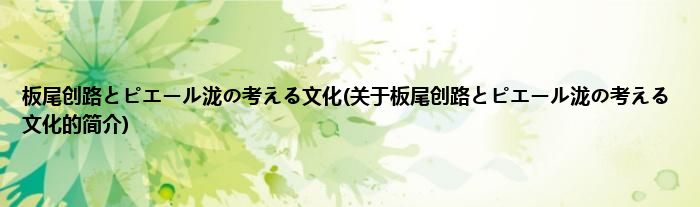 本文关于板尾创路とピエール泷の考える文化的简介就讲解完毕,希望对大家有所帮助。