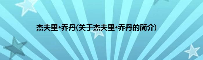 本文关于杰夫里·乔丹的简介就讲解完毕,希望对大家有所帮助。