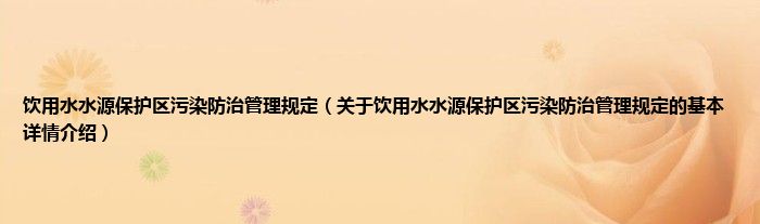 本文关于饮用水水源保护区污染防治管理规定的基本详情介绍就讲解完毕,希望对大家有所帮助。