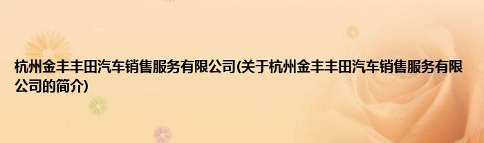 本文关于杭州金丰丰田汽车销售服务有限公司的简介就讲解完毕,希望对大家有所帮助。