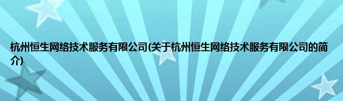 本文关于杭州恒生网络技术服务有限公司的简介就讲解完毕,希望对大家有所帮助。