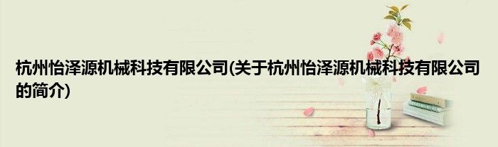 本文关于杭州怡泽源机械科技有限公司的简介就讲解完毕,希望对大家有所帮助。