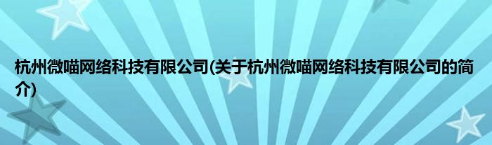 本文关于杭州微喵网络科技有限公司的简介就讲解完毕,希望对大家有所帮助。