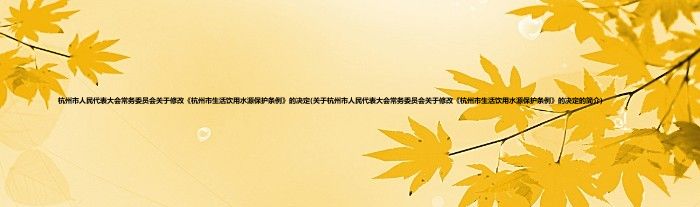 大家好,杭州市人民代表大会常务委员会关于修改《杭州市生活饮用水源保护条例》的决定,关于杭州市人民代表大会常务委员会关于修改《杭州市生活饮用水源保护条例》的决定的简介很多人还不知道,现在让我们一起来看看吧!