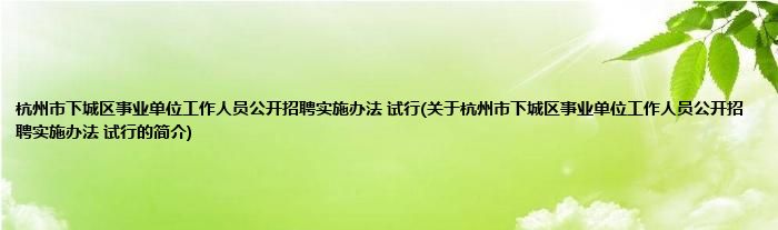 大家好,杭州市下城区事业单位工作人员公开招聘实施办法 试行,关于杭州市下城区事业单位工作人员公开招聘实施办法 试行的简介很多人还不知道,现在让我们一起来看看吧!