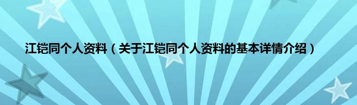 本文关于江铠同个人资料的基本详情介绍就讲解完毕,希望对大家有所帮助。
