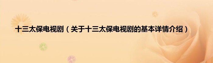 本文关于十三太保电视剧的基本详情介绍就讲解完毕,希望对大家有所帮助。