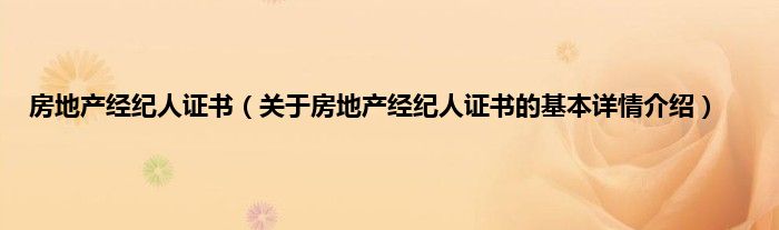 本文关于房地产经纪人证书的基本详情介绍就讲解完毕,希望对大家有所帮助。