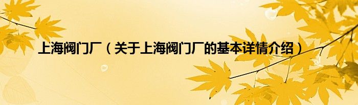 本文关于上海阀门厂的基本详情介绍就讲解完毕,希望对大家有所帮助。