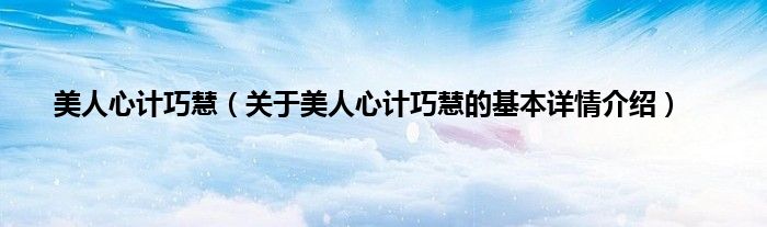 本文关于美人心计巧慧的基本详情介绍就讲解完毕,希望对大家有所帮助。
