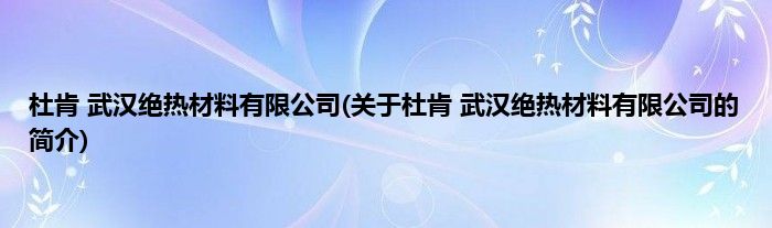 本文关于杜肯 武汉绝热材料有限公司的简介就讲解完毕,希望对大家有所帮助。
