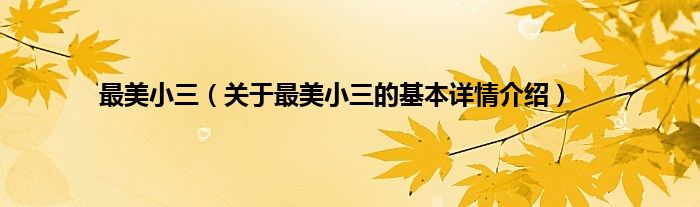 本文关于最美小三的基本详情介绍就讲解完毕,希望对大家有所帮助。